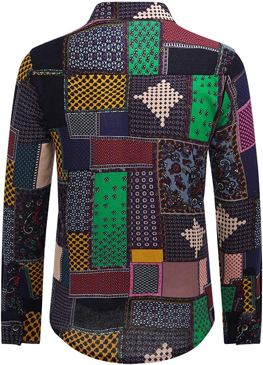 Allthemen Mens Casual Printed Shirts Long Sleeve Floral